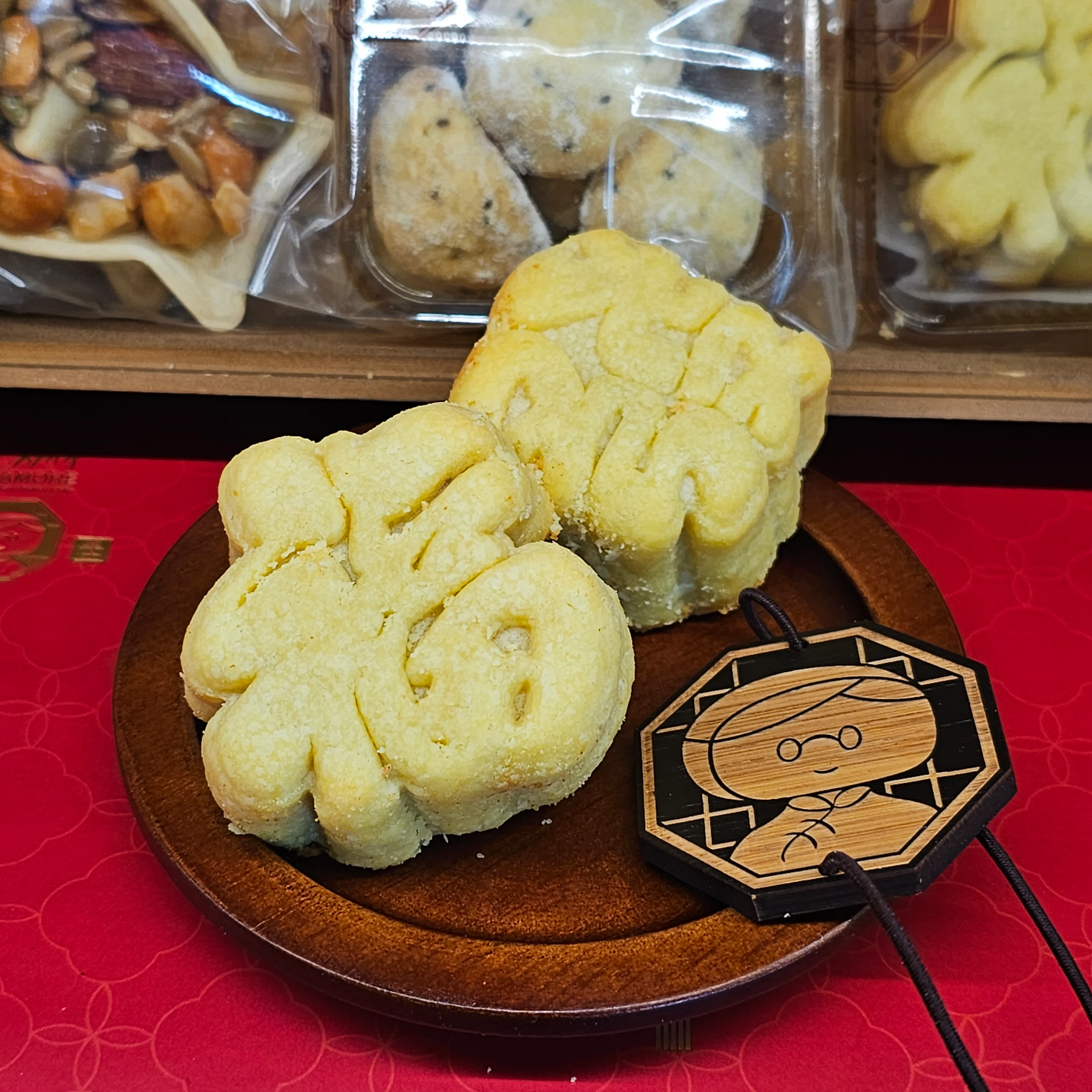 - 以果仁杏片為基礎,搭配台灣黑糖精心調味,經焗製至香脆,意寓著歲歲平安、年年有餘。